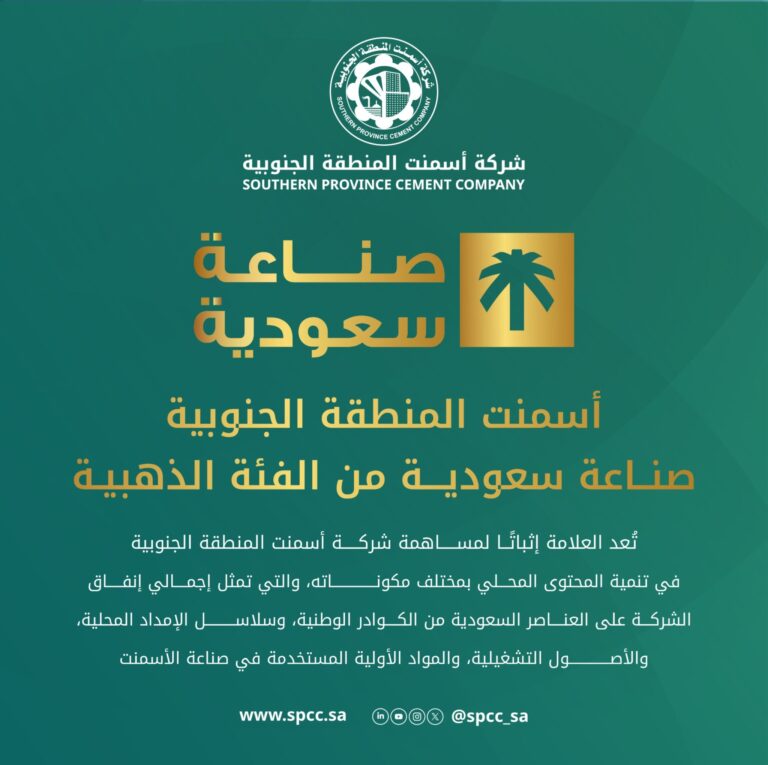 أسمنت المنطقة الجنوبية تحصل على العلامة الذهبية لـصناعة سعودية وتعزز المحتوى المحلي
