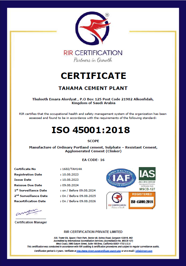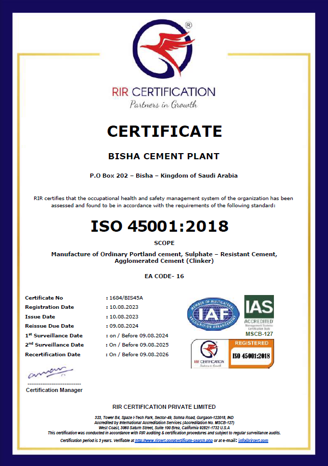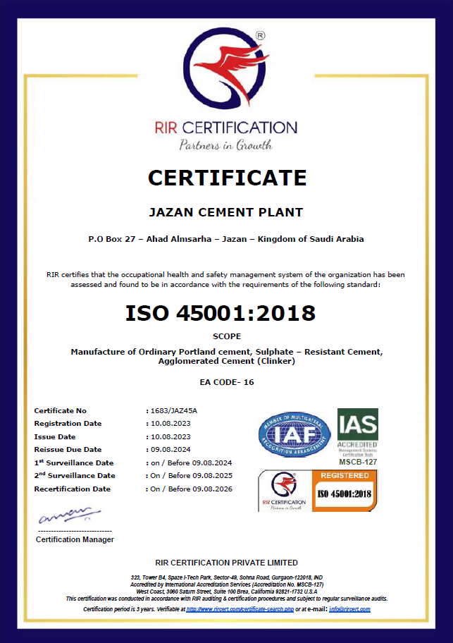 تلتزم شركة أسمنت المنطقة الجنوبية بتوفير بيئة عمل آمنة وصحية لموظفيها ومقاوليها، وبحماية البيئة في جميع مراحل عملياتها التشغيلية بما يتماشى مع المعايير الدولية ISO 45001 وISO 14001، ومع توجهات المملكة نحو الاستدامة، ورفع جودة الحياة، والحد من الانبعاثات، وتعزيز الاقتصاد الدائري. تعد إدارة البيئة والصحة والسلامة جزءًا جوهريًا من ثقافة الشركة ونظام عملها، وهي محور أساسي لتحقيق التشغيل المسؤول والمستدام.