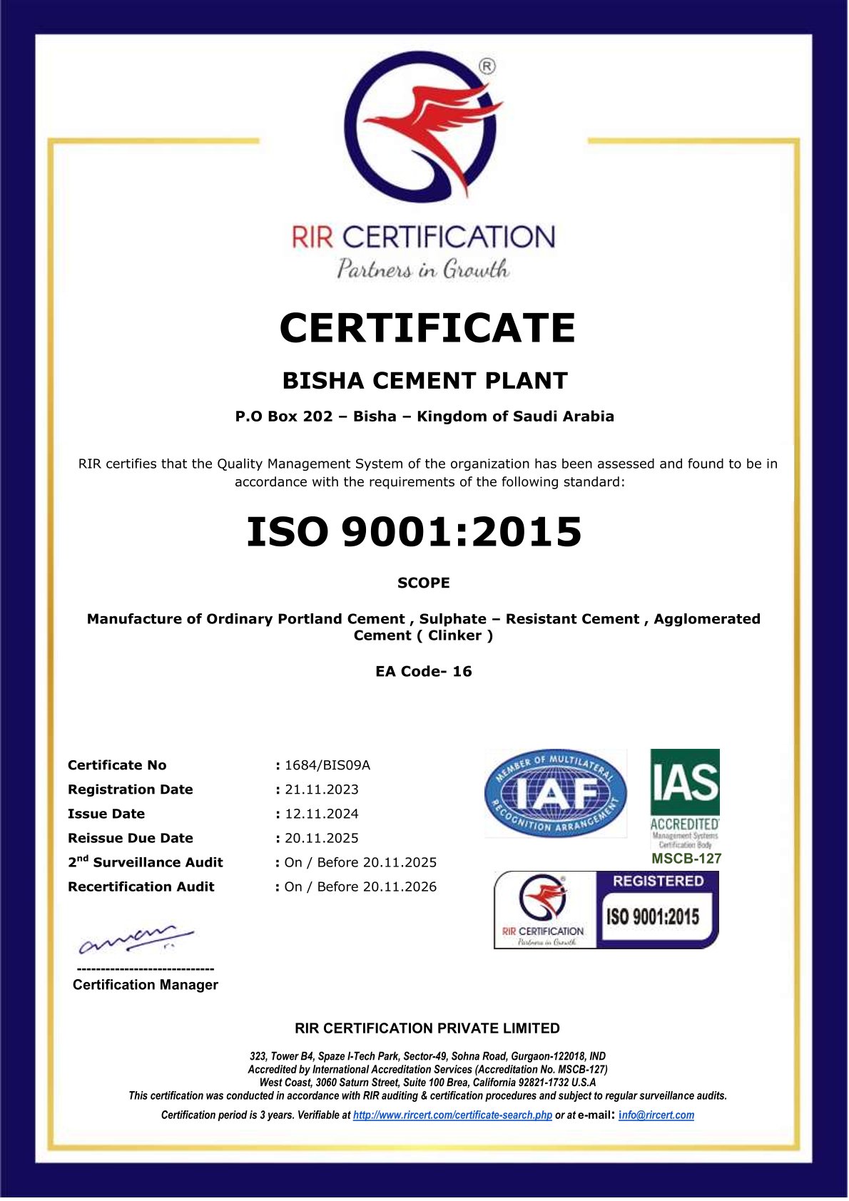 ايزو الجودة مصنع بيشة 9001