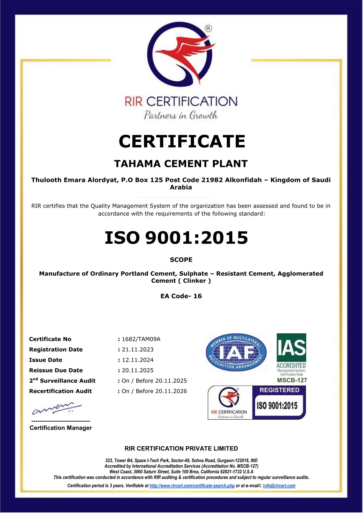 ايزو الجودة مصنع تهامة 9001