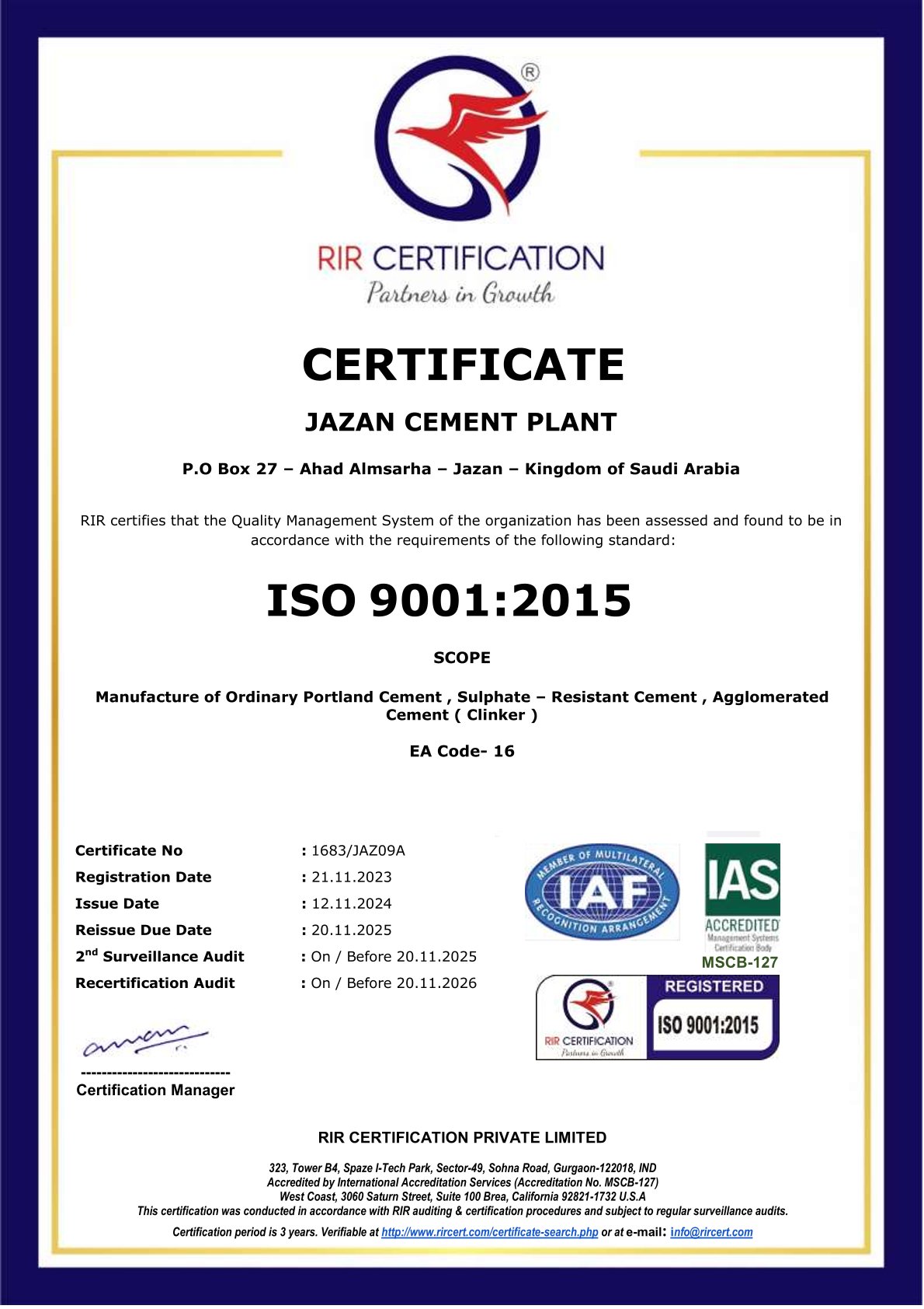 ايزو الجودة مصنع جازان 9001