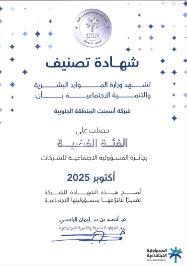 تهدف سياسة المسؤولية الاجتماعية في اسمنت المنطقة الجنوبية إلى خلق أثر اجتماعي إيجابي ومستدام لتعزيز دورها الريادي في خدمة المجتمع المحلي من خلال برامج المسؤ ولية الاجتماعية التي تقدمها، وبما يواكب أفضل الممارسات في مجال أعمال المسؤولية الاجتماعية، وتسعى الشركة إلى المساهمة الفعالة